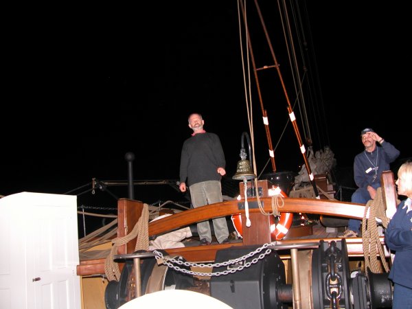 John Warner leads a song on the foredeck